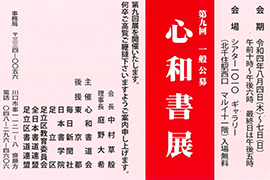 毎日書道展審査会員;日本書学院事務局長の中村草殷が会長、庭野大希が理事長を務める心和書道会の本展。